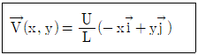 2차원 직각좌표계(x, y)에서 속도장이 다음과 같은 유동이 있다. 유동장 내의 점 (L, L)에서 유속의 크기는? (단,