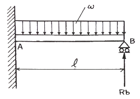 그림과 같은 부정정보가 등분포 하중(ω)을 받고 있을 때 B점의 반력 Rb는?