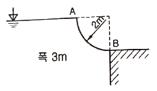 그림과 같이 폭이 3m인 수문 AB가 받는 수평성분 FH와 수직성분 FV는 각각 약 몇 N 인가?