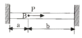 양단이 고정된 막대의 한 점(B점)에 그림과 같이 축방향 하중 P가 작용하고 있다. 막대의 단면적이 A이고 탄성계수가 E 일 때, 하중 작용점(B점)의 변위 발생량은?