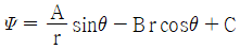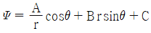 극좌표계(r, θ)로 표현되는 2차원 포텐셜유동에서 속도포텐셜(velocity potential, ø)이 다음과 같을 때 유동함수(stream function,