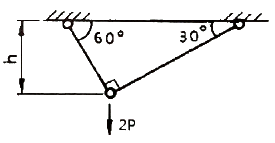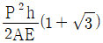 그림의 구조물이 수직하중 2P를 받을 때 구조물 속에 저장되는 총 탄성변형에너지는? (단, 구조물의 단면적은 A, 세로탄성계수는 E로 모두 같다.)
