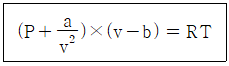 Van der Waals 상태 방정식은 다음과 같이 나타낸다. 이 식에서 a/v2, b는 각각 무엇을 의미하는 것인가? (단, P는 압력, v는 비체적, R은 기체상수, T는 온도를 나타낸다.)
