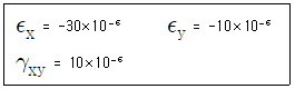 기계요소의 임의의 점에 대하여 스트레인을 측정하여 보니 다음과 같이 나타났다. 현 위치로부터 시계방향으로 30° 회전된 좌표계의 y방향의 스트레인 εy는 얼마인가? (단, ε은 각 방향별 수직변형률, γ는 전단변형률을 나타낸다.)