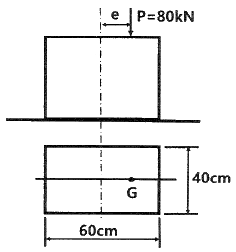 그림과 같은 단주에서 편심거리 e에 압축하중 P=80kN이 작용할 때 단면에 인장응력이 생기지 않기 위한 e의 한계는 몇 cm 인가? (단, G는 편심 하중이 작용하는 단주 끝단의 평면상 위치를 의미한다.)