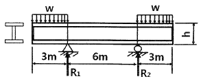 그림과 같은 돌출보에서 ω=120 kN/m의 등분포 하중이 작용할 때, 중앙 부분에서의 최대 굽힘응력은 약 몇 MPa 인가? (단, 단면은 표준 I형 보로 높이 h = 60cm 이고, 단면 2차 모멘트 I = 98200 cm4 이다.)