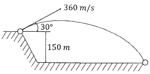 다음 그림과 같은 조건에서 어떤 투사체가 초기속도 360m/s로 수평방향과 30°의 각도로 발사되었다. 이때 2초 후 수직방향에 대한 속도는 약 몇 m/s 인가? (단, 공기저항 무시, 중력가속도는 9.81 m/s2 이다.)