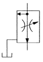 그림과 같은 유압기호가 나타내는 것은? (단, 그림의 기호는 간략 기호이며, 간략 기호에서 유로의 화살표는 압력의 보상을 나타낸다.)
