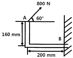 그림과 같이 800N의 힘이 브래킷의 A에 작용하고 있다. 이 힘의 점 B에 대한 모멘트는 약 몇 N·m 인가?