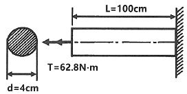 그림에서 고정단에 대한 자유단의 전 비틀림각은? (단, 전단탄성계수는 100GPa 이다.)