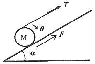 경사면에 질량 M의 균일한 원기둥이 있다. 이 원기둥에 감겨 있는 실을 경사면과 동일한 방향인 위쪽으로 잡아당길 때, 미끄럼이 일어나지 않기 위한 실의 장력 T의 조건은? (단, 경사면의 각도는 α, 경사면과 원기둥사이의 마찰계수를 μs, 중력가속도를 g라 한다.)
