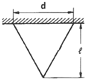 상단이 고정된 원추 형체의 단위체적에 대한 중량을 γ라 하고 원추 밑면의 지름이 d, 높이가 ℓ일 때 이 재료의 최대 인장응력을 나타낸 식은? (단, 자중만을 고려한다.)