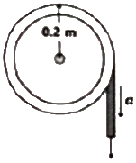 그림과 같이 최초 정지상태에 있는 바퀴에 줄이 감겨있다. 힘을 가하여 줄의 가속도(a)가 a=4t[m/s2]일 때 바퀴의 각속도(ω)를 시간의 함수로 나타내면 몇 rad/s인가?
