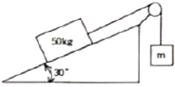 30°로 기울어진 표면에 질량 50kg인 블록이 질량 m인 추와 그림과 같이 연결되어 있다. 경사 표면과 블록 사이의 마찰계수가 0.5일 때 이 블록을 경사면으로 끌어올리기 위한 추의 최소 질량은 약 몇 kg인가?