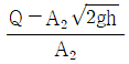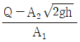 로 저수조 바닥에 있는 면적 A2의 구멍을 통하여 나간다. 저수조 수면 높이가 변화하는 속도