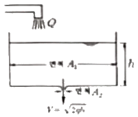 그림과 같이 물이 유량 Q로 저수조로 들어가고, 속도