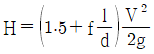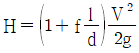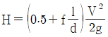 그림과 같이 날카로운 사각 모서리 입출구를 갖는 관로에서 전수두 H는? (단, 관의 길이를 I, 지름은 d, 관 마찰계수는 f, 속도수두는