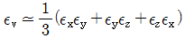 직육면체가 일반적인 3축 응력 σx, σy, σz를 받고 있을 때 체적 변형률 εv는 대략 어떻게 표현되는가?