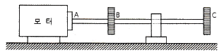 지름 50mm인 중실축 ABC가 A에서 모터에 의해 구동된다. 모터는 600rpm으로 50kW의 동력을 전달한다. 기계를 구동하기 위해서 기어 B는 35kW, 기어 C는 15kW를 필요로 한다. 축 ABC에 발생하는 최대 전단응력은 몇 MPa 인가?