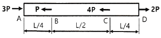 알루미늄봉이 그림과 같이 축하중 받고 있다. BC간에 작용하고 있는 하중의 크기는?