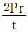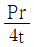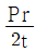 반경 r, 내압 P, 두께 t인 얇은 원통형 압력용기의 면내에서 발생되는 최대 전단응력(2차원 응력 상태에서의 최대 전단응력)의 크기는?