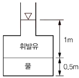 그림과 같이 용기에 물과 휘발유가 주입되어 있을 때, 용기 바닥면에서의 게이지압력은 약 몇 kPa인가? (단, 휘발유의 비중은 0.7이다.)
