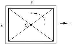 네 개의 가는 막대로 구성된 정사각 프레임이 있다. 막대 각각의 질량과 길이는 m과 b이고, 프레임은 ω의 각속도로 회전하고 질량 중심 G는 u의 속도로 병진운동하고 있다. 프레임의 병진운동 에너지와 회전운동에너지가 같아질 때 질량중심 G의 속도(u)는 얼마인가?