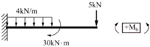 그림과 같은 선형 탄성 균일단면 외팔보의 굽힘 모멘트 선도로 가장 적당한 것은?