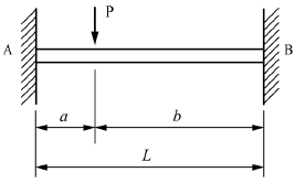 그림과 같은 양단 고정보에서 고정단 A에서 발생하는 굽힘 모멘트는? (단, 보의 굽힘 강성계수는 EI이다.)