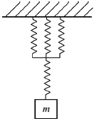 스프링 상수가 k인 스프링을 4등분하여 자른 후 각각의 스프링을 그림과 같이 연결하였을 때, 이 시스템의 고유 진동수(ωn)는 약 몇 rad/s인가?