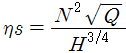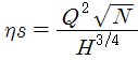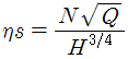 펌프에서 유량을 Qm3/min, 양정을 Hm, 회전수 Nrpm이라 할 때 1단 펌프에서 비교 회전도 ηs를 구하는 식은?