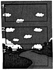 아래 스토리보드에서 쓰인 카메라 기법은? (단, 카메라가 1→2→3 순으로 이동한다.)