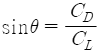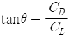 활공비행에서 활공각(θ)을 나타내는 식으로 옳은 것은? (단, CL: 양력계수, CD: 항력계수이다.)