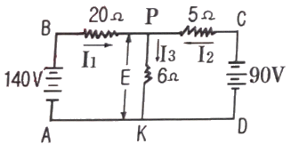 그림과 같은 회로에서 5Ω저항에 흐르는 전류값은 몇 A인가?
