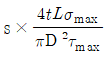 손상된 판재를 리벳에 의한 수리작업 시 리벳수를 결정하는 식으로 옳은 것은? (단, L : 판재의 손상된 길이, D: 리벳지름, t: 손상된 판의 두께, s: 안전계수, σmax: 판재의 최대인장응력, τmax: 판재의 최대전단응력이다.)