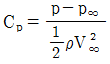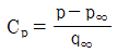 다음 중 압력계수(Cp)의 정의로 틀린 것은? (단, P∞ : 자유흐름의 정압, p : 임의점의 정압, V : 임의점의 속도, V∞ : 자유흐름의 속도, ρ : 밀도, q∞ : 자유흐름의 동압이다.)