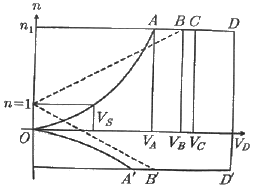 그림과 같은 V-n 선도에서 항공기의 순항성능이 가장 효율적으로 얻어지도록 설계된 속도를 나타내는 지점은?