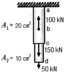 그림과 같이 단면적 20 cm2, 10 cm2 로 이루어진 구조물의 a-b 구간에 작용하는 응력은 몇 kN/cm2 인가?
