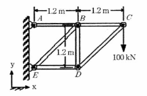 다음과 같은 트러스(Truss)구조에 있어, 부재 DE의 내력은 약 몇 kN 인가?(오류 신고가 접수된 문제입니다. 반드시 정답과 해설을 확인하시기 바랍니다.)