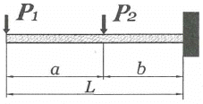 그림과 같은 외팔보에 집중하중(P1, P2)이 작용할 때 벽 지점에서의 굽힘모멘트를 옳게 나타낸 것은?