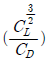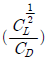 제트항공기가 최대항속시간을 비행하기 위해 최대가 되어야 하는 것은? (단, CL은 양력계수, CD는 항력계수이다.)