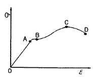 그림과 같은 응력-변형률 선도에서 극한응력의 위치는?(단, σ 는 응력, ε 은 변형률을 나타낸다.)