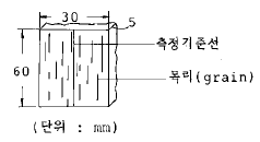 다음 그림은 목재의 무슨 방향의 수축율을 측정하기 위해 만든 시편인가?