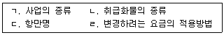 항만운송사업법령상 감정사업의 등록을 한 자가 요금의 변경신고를 할 경우 제출 서류에 기재하여야 하는 사항을 모두 고른 것은?
