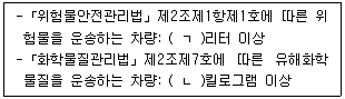 물류정책기본법령상 도로운송 시 위험물질운송안전관리센터의 감시가 필요한 위험물질을 운송하는 차량의 최대 적재량 기준에 관한 설명이다. ( )에 들어갈 내용은?
