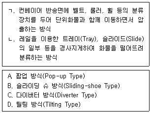 다음의 자동분류장치의 설명과 종류의 연결로 옳은 것은?
