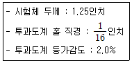 보일러 및 압력용기에 대한 표준방사선투과검사(ASME Sec.V Art.22 SE-1025)에서 [보기]의 조건을 만족하는 유공형 투과도계 두께는 약 얼마인가?