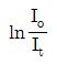 필름의 검은 정도를 정량적으로 나타내는 방사선 투과사진의 농도를 바르게 표현한 식은? (단, Io는 필름에 입사된 빛의 강도, It는 필름을 투과한 빛의 강도이다.)
