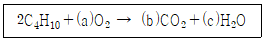부탄이 공기 중에서 완전 연소하는 화학반응식은 다음과 같다. ( ) 안에 들어갈 계수들 중 a의 값은 얼마인가?