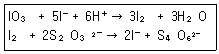 1차 표준물질 KIO3 (분자량=214.0g/mol) 0.208g으로부텉 생성된 l2를 적정하기 위해서 다음과 같은 반응으로 Na2 S2 O3가 28.5mL가 소요되었다. 적정에 사용된 Na2 S2 O3의 농도는 몇 M인가?